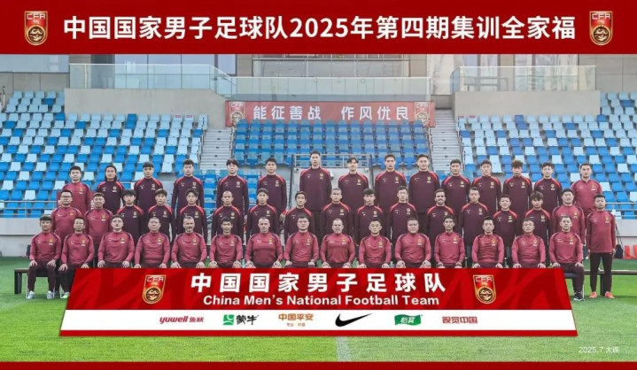 而国足在这种声讨中,发布了2025年国足第四期集训的全家福照片。本来,发布集训全家福是一个常规的操作,并没有什么不妥。然而,全家福背后的八字标语“能征善战、作风优良”,全成为了极大的讽刺。
